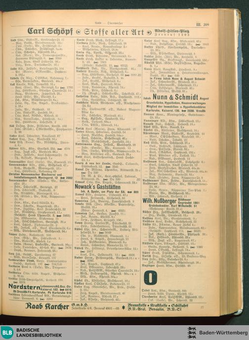 Adressbuch der Gau- und Landeshauptstadt Karlsruhe